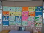 2年生の教室の廊下には、素敵な春の絵が貼ってあります。