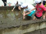田んぼの中の泥に悪戦苦闘しながらも、みんな楽しそうです。