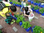 1年生が生活科で育てているアサガオが、だいぶ大きくなりました。