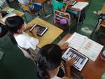 今は鍵盤ハーモニカを使うことが難しいため、このようにタブレットをうまく活用して学習を行っています。