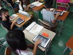 一人ひとりの机の上に1台ずつタブレットがあります。