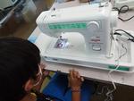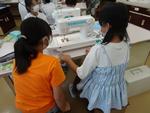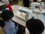 カタカタとミシンが動く様子を楽しそうに眺める子どもたち。