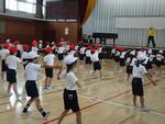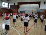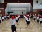 今日は、体育館で1年生がダンスの練習をしていました。