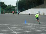校庭は体育館に比べて広々としているので、思いっきり走ることができて、気持ちよさそうです。