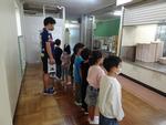 毎日、給食の片付けの後には、当番が給食室前にきちんと並んで挨拶をします。