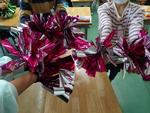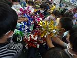 1年生の教室では、どきスポのダンスで使うポンポン作りをしていました。