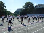 ラジオ体操の隊形や徒競走の並び順を確認したり、ダンスの見合いをしたりしました。