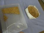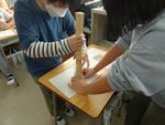 ビンとすりこぎ棒などを使って地道に作業を進めていきます。