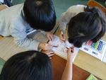 授業の後半は、絵に色を塗り、オリジナルの動物を完成させます。