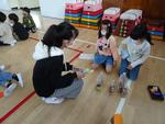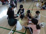 1年生が作ったおみくじやけん玉で6年生も楽しそうに遊んでいます。