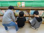 何を借りようか、わくわくしながら本を探す子どもたち。