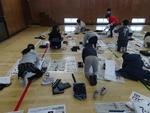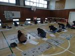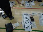 今日は、体育館で4年生と6年生が書き初めをしました。