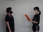 今日の朝会は、国際理解の先生とのおわかれ会です。