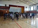 素敵な飾りに囲まれて、6年生は卒業式の練習を頑張っています。
