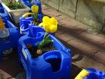1年生の育てているチューリップの花が咲き始め、個別支援級の子どもたちが花壇に植えた花もきれいに咲いています。