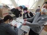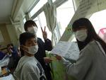 3クラス入り混じって、卒業アルバムにメッセージを書き合っているようです。