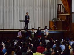 全校児童の皆さんも師走の文字を見ながら、真剣にお話を聞いていました。