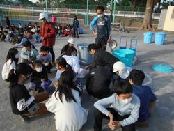全校集会で「玉入れ大会」をしました。