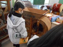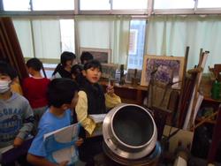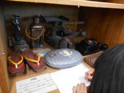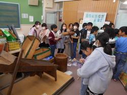蒔田小学校には「郷土資料館」という教室があります。3年生の社会科の授業で、昔の生活や道具について学習しました。今ではあまり見なくなった「黒電話」や昔の農機具など、手に触れながら学習できます。子ども達は楽しそうに道具をデッサンしたり、取り扱いの仕方をメモしたりするなど、いきいきと学ぶことができました。