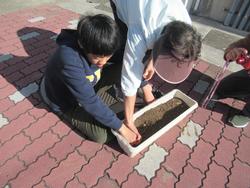 1月18日(木) 環境委員会の皆さんで、チューリップの球根を植えました。