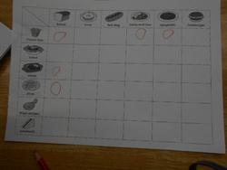 好きな食べ物ペアに5つ「〇」をつけたら、ゲームスタート! What food do you like?と先生に聞くと、先生が食べ物カードを出します。出た食べ物のマスを消していき、最後まで残ったらWIN!というゲームでした。みんな楽しく取り組んでいました。