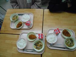 今日のメニューは、ごはん・にくだんごとはくさいのスープ・アジフライ・牛乳です。いただきます!をしたら、楽しい食事の時間です。「中学入ったら〇〇部に入ろうかな?」「中学校って、今日期末試験の日だって。」「中学校って、勉強大変かな…」と、6年生ならでは会話で盛り上がっていました。6年生は、小学校で給食が食べられるのも、あと一か月。楽しい給食の時間を仲間と一緒に大切にしてくださいね。