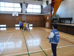 体育館にいってみると、「大谷グローブ」で3年生がキャッチボールをしていました。「はじめてグローブをつけたよ!」「キャッチボール楽しい!」と喜びながら取り組んでいました。