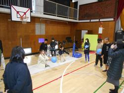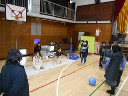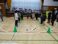 前半は、1組・2組に分かれて、この一年間総合で取り組んできた「ボッチャ」やパラスポーツについての発表活動をおこないました。体育館では、さまざまなパラスポーツを実際に体験する活動などをおこないました。