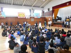各学年でこれまでお世話になった6年生への感謝をあらわしました。歌や言葉がけ、一文字など工夫を凝らした発表をおこないました。6年生は卒業まであと少しです。残りの小学校生活を楽しんでくださいね。