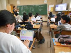 本年度はじめての授業参観・懇談会ということもあって、大勢の保護者の皆様がご来校されました。6年生ではipadを使って政治についての授業が行われていました。2階の円形校舎中央には、子どもたちの描いた桜の絵が飾られています。保護者の皆様からも「丸く飾られて、お花畑みたい!」と大絶賛でした。