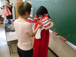 本年度は、韓国からいらしたチョイソンヒ先生が国際理解教室を担当しています。はじめは韓国の「挨拶」「数の数え方」「じゃんけん」をみんなで練習をしてから、いろんな国の「お金」の中から、韓国の「ウォン」を見つけるゲームをしました。そして最後は、民族衣装を着てみる体験などをしました。新しい発見がたくさんあって、楽しく学習できました!!