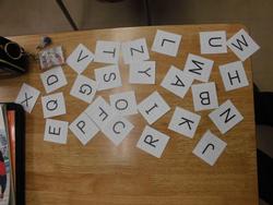 アルファベットを学習していました。カードをバラバラにして、発音しながら並べなおしたり、時間内に並べる練習をしたりしていました。