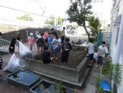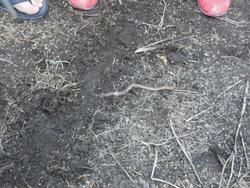 まずは、雑草を抜いて整地します。雑草抜きが終わると、みんなで土を耕します。作業の途中、立派な「みみず」が出てきました!