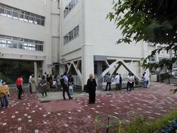 ちょうど一年生がピロティーで朝顔の観察をしていました。一年生の楽しそうな声がたくさん聞こえました。