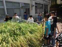 9月11日(水)新しい先生をお迎えしました。5年生が稲のお世話をしました。