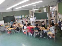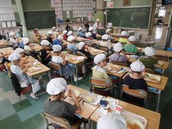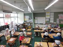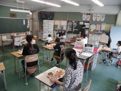 個別級、1,2年生の教室をのぞいていると、子ども達の中にはチーズを細かくしてスパゲティに入れて食べている子もいました。