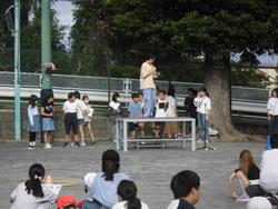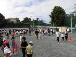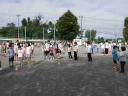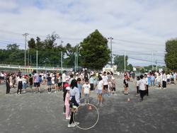 なかよしグループに分かれて、手をつないで「フープくぐり」をおこないました。チーム全員で手をつなぎ、順番にフープをくぐります。手を離さないように、体全体をつかってフープを渡していきます。楽しく交流ができましたね♪来月は運動会。みんなで頑張ろう!!
