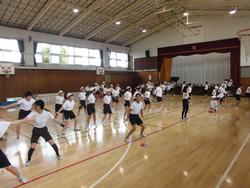 5・6年生合同で、まずは「ソーラン節」を踊るにあたっての心構えなどを確認しあいました。そして5・6年生で小さなグループを作って、教え合いながら練習に取り組みました。本番では素晴らしい演技を見せてくれるはずです! 頑張れ5・6年生~!!