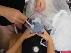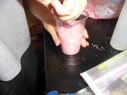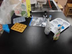 科学クラブが「バスボム」づくりをしていました。お風呂に入れると、きれいな色になる入浴剤です。