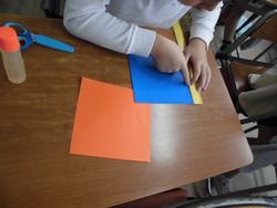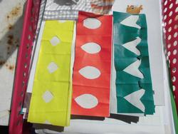 折り紙を折って、いろんな形に切って、しおりをつくりました。