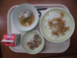 今日は、牛乳・ツナそぼろ・ごはん・さわにわん・「あげだいず」 です。