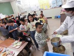 「あげだいず」が残っていると、写真のようにおかわりの大行列ができます。たくさん食べて、お豆パワーで運動会がんばろうね♪