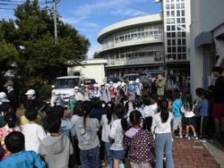 出発式が終わって、いよいよ出発~!一年生や個別支援学級の皆さんも見送りに来てくれました。カップヌードルミュージアムや日本丸博物館にいきます。たくさん楽しい思い出を作ってきてね。