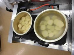 皮をむいて、ゆでて、味付けをして、形をつくって・・・保護者の皆様も一緒に調理に参加しました。