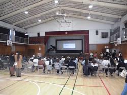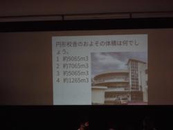 また、体育館では6年生が学習発表会を行っていました。算数では、「円形校舎の体積は?」という問題をつくるなど、たくさんのクイズを作って盛り上げていました。