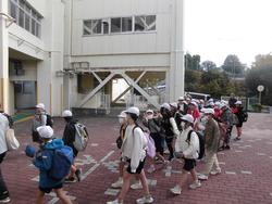 素晴らしい秋晴れです。今日は5年生が球技大会に出かけます。