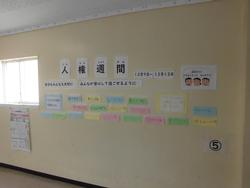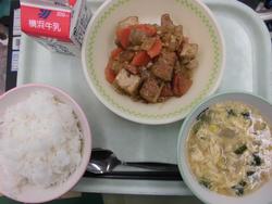 今日は、ごはん、中華スープ、なまあげと豚肉のみそ炒め、牛乳です。厚揚げに味がしっかりついていて、ごはんが進みます。中華スープも体が温まります。給食が終わり、校舎内を歩いていると、「人権週間」の掲示物がありました。来週9日から人権週間が始まります。スープに負けないくらい、暖かい言葉をたくさん使いましょう!