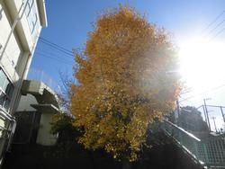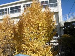 立派な銀杏の木が3本立っています。黄金色にきれいに色づいています。