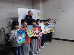そして、表彰が2件。はじめに「体育読本」の表紙絵募集に9名の児童が参加しました。素敵で躍動感のある作品を仕上げました。