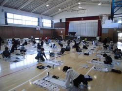 今日は4・6年生が「書初め」を体育館でおこないました。